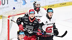 Plzeňský Ville Petman brání karlovarského Jiřího Černocha.